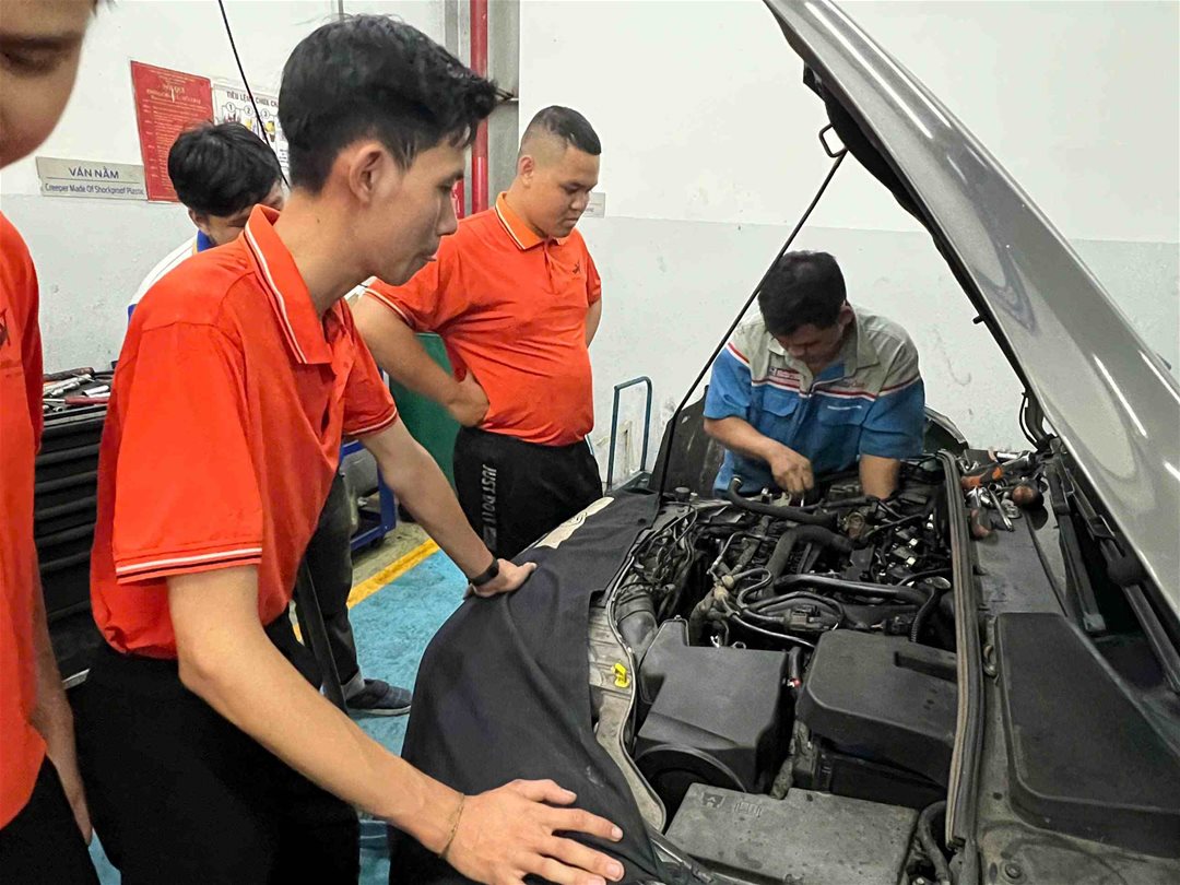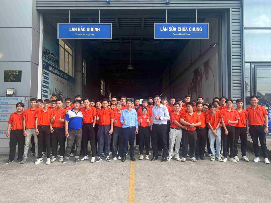 Bên cạnh việc tham quan, sinh viên còn có cơ hội trao đổi, đặt câu hỏi với đội ngũ kỹ thuật viên và cố vấn dịch vụ giàu kinh nghiệm, từ đó hiểu rõ hơn về yêu cầu nghề nghiệp, định hướng phát triển bản thân và cơ hội thực tập – việc làm trong ngành ô tô sau khi tốt nghiệp.