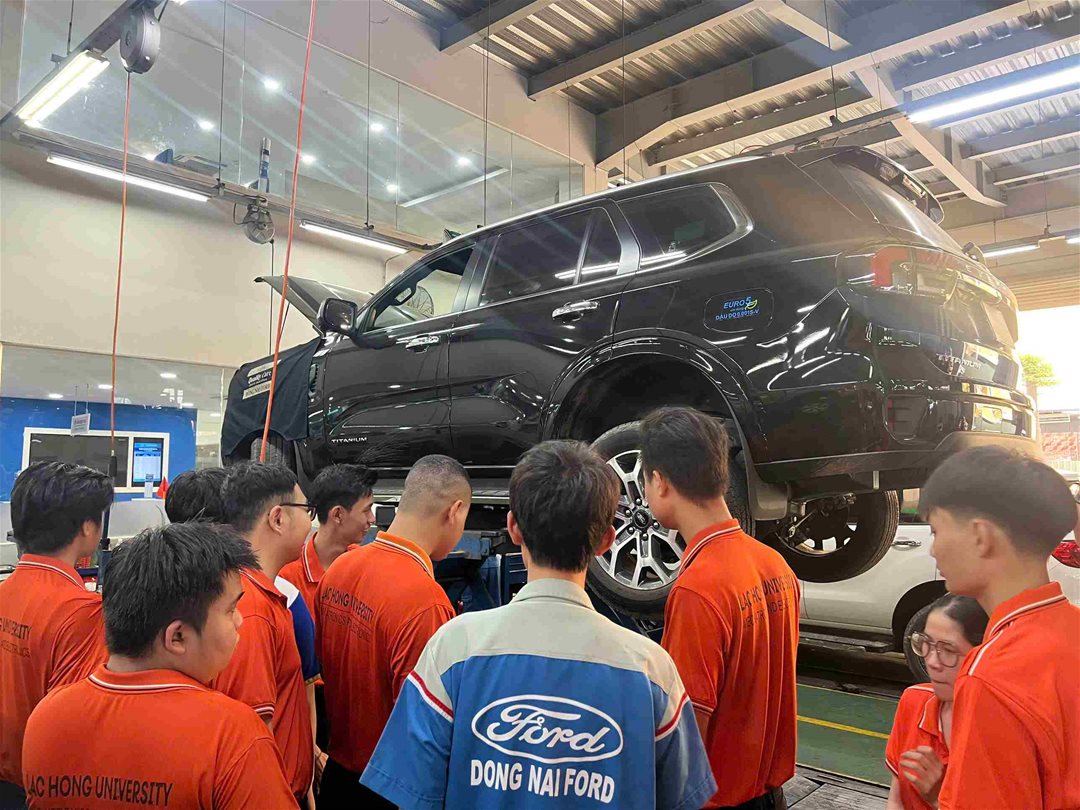 Nhằm tăng cường gắn kết giữa đào tạo lý thuyết và thực tiễn doanh nghiệp, vừa qua, sinh viên ngành Công nghệ Kỹ thuật Ô tô đã có chuyến tham quan và học tập thực tế tại  Ford Đồng Nai – đơn vị uy tín trong lĩnh vực kinh doanh, dịch vụ và bảo dưỡng ô tô tại khu vực Đông Nam Bộ.