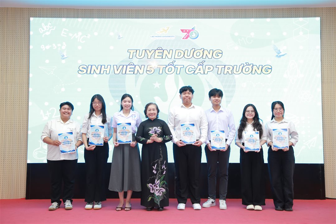 Đồng thời, Hội Sinh viên Trường đã trao Giấy chứng nhận Danh hiệu “Sinh viên 5 Tốt” cấp Trường năm học 2024 – 2025 cho 53 sinh viên xuất sắc – những tấm gương tiêu biểu trong học tập, rèn luyện đạo đức, thể lực, tình nguyện và hội nhập, góp phần lan tỏa hình ảnh sinh viên Lạc Hồng năng động, bản lĩnh và trách nhiệm.