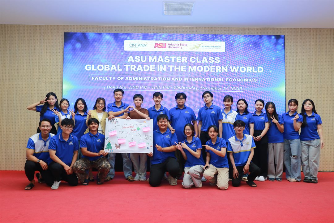 Chiều ngày 17/12/2025, không khí tại phòng A301 (Cơ sở 1) đã trở nên "nóng" hơn bao giờ hết với sự tham gia của đông đảo sinh viên các ngành Kinh doanh quốc tế, Luật, Luật kinh tế và Quản trị dịch vụ du lịch & lữ hành trong chuyên đề ASU Master Class: "Global Trade in the Modern World".