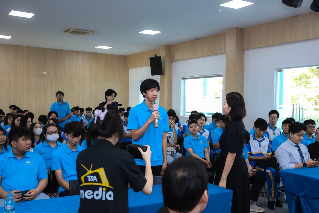 Phần cuối chương trình là buổi giao lưu giữa tân sinh viên với giảng viên và các cựu sinh viên. Những câu chuyện thực tế, kinh nghiệm học tập và định hướng nghề nghiệp đã tiếp thêm động lực để các bạn trẻ tự tin bước vào môi trường đại học.