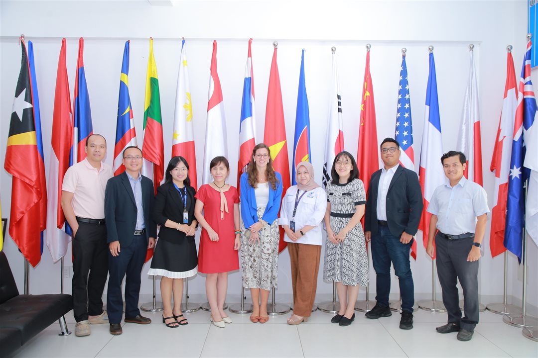 Welcoming the delegation were Ms. Nguyen Thi Hoanh Oanh, Head of the Office of International Affairs; Mr. Hoang Tien Dung, Deputy Head of the Office of International Affairs; Mr. Dang Thi, Vice Dean of the Faculty of English Language; Mr. Nguyen Thanh Trung, Vice Dean of the Faculty of Civil Engineering; along with other staff members.