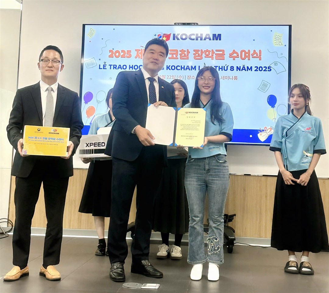 Founded in 2003, KoCham is a non-profit organization representing more than 5,000 Korean enterprises operating in Central and Southern Vietnam. Over the years, KoCham has been actively involved in various social and charitable initiatives, calling on Korean businesses to contribute to community development and educational support programs. Since 2018, KoCham has established a Scholarship Fund for Korean Studies students in Vietnam, affirming its long-term commitment to education and human resource development.